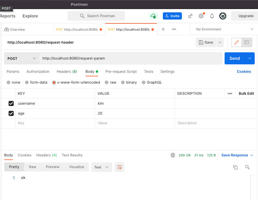 . application/x-www-form-urlencoded 형식은 앞서 GET에서 살펴본 쿼리 파라미터 형식과 같다.