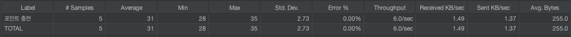 포인트 충전에 대해서는 동일한 유저가 동시에 5번(충돌 가능성 낮음을 가정)을 호출하는 케이스를 테스트하였다.