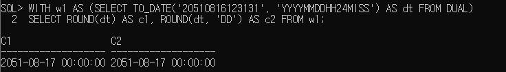 ROUND(date) 함수는 fmt를 기준으로 date를 반올림한다. fmt의 기본값은 DD다.