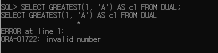 LEAST 함수와 GREATEST 함수는 expr의 데이터 타입이 동일해야 한다. 데이터타입이 다른 expr은 첫 번째 expr의 데이터 타입으로 변환된다.