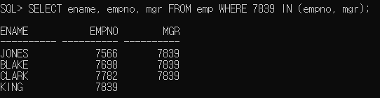 IN조건은 expr의 목록과 일치하거나 일치하지 않는 행을 반환한다.
