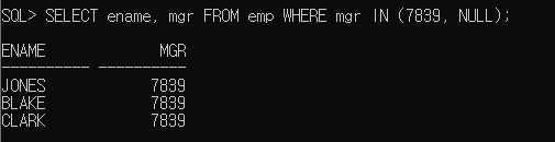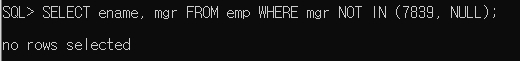 NOT IN 조건의 expr에 널이 입력되면 결과가 반환되지 않는다.