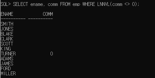 LNNVL 함수는 condition이 FALSE나 UNKNOWN이면 TRUE, TRUE면 FALSE를 반환한다.