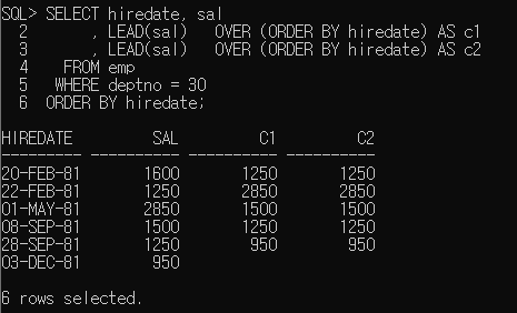 LEAD 함수는 현재 행에서 offset 이후 행의 value_expr을 반환한다.