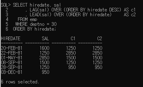 LEAD 함수는 현재 행에서 offset 이후 행의 value_expr을 반환한다.