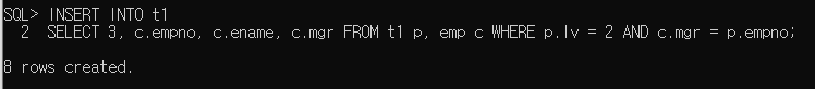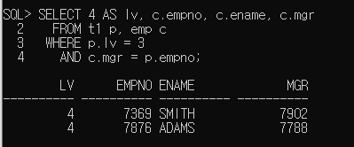 CONNECT BY 절로 임시 테이블에 저장된 3단계 결과와 emp 테이블을 조인한다.