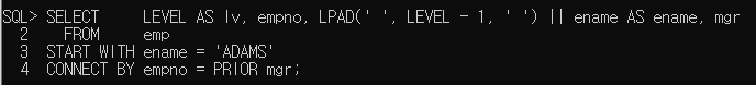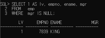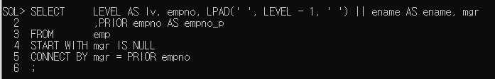 | 연산자 | PRIOR | 직전 상위 노드의 값을 반환 |