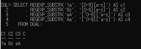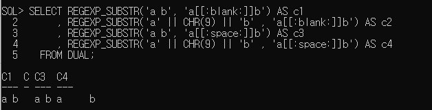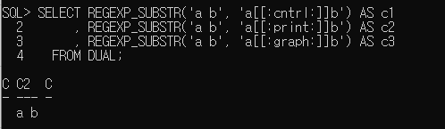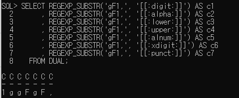 오라클 정규 표현식은 POSIX 문자 클래스를 지원한다. POSIX 문자 클래스는 문자 리스트에 사용해야 한다.