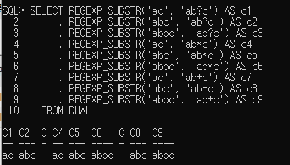 | [char...] | 문자 리스트 중 1문자와 일치 |