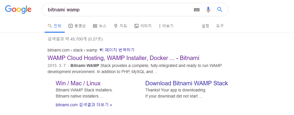 검색엔진에 bitnami wamp(Windows, Apache, MySQL, PHP) 검색 후 다운로드