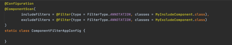 - includeFilters : 컴포넌트 스캔 대상을 추가로 지정한다.